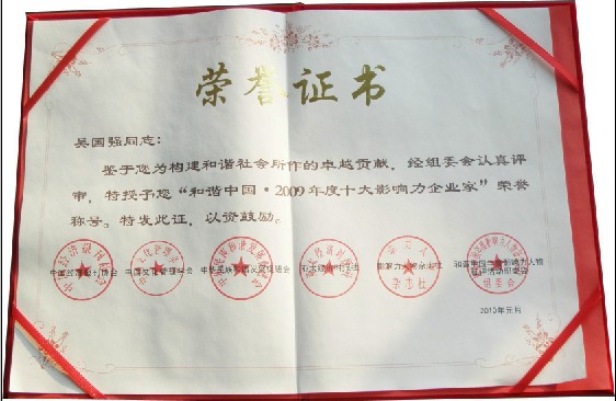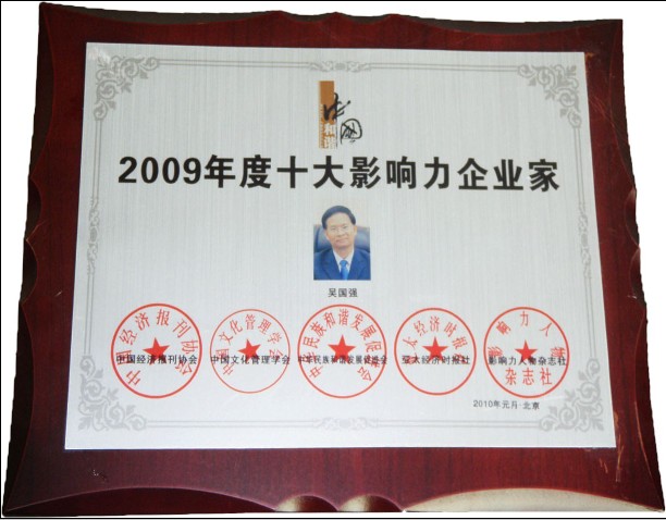 首页 > 企业新闻 > 吴国强董事长荣获“2009年度十大影响力企业家”称号